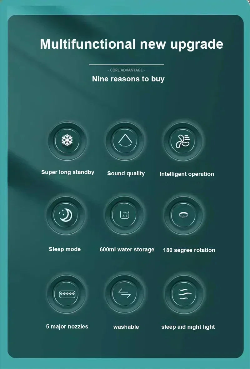 *3 Wind and 3 Spray: The air cooler fan has 3 wind speed modes (low/medium/high) and 3 spray modes, you can adjust the wind speed and spray mode according to the occasion. It is a combination of personal air conditioning cooler, fan, and air humidifier, with a three-in-one multi-functional design, allowing you to stay away from the hot summer and enjoy a cool summer. 7 colorful lights create a romantic atmosphere on the dining table or coffee table on hot summer nights! Put it in the bedroom and accompany you into the beautiful night. This air cooler works powerfully and makes low noise, allowing you to sleep comfortably throughout the night in a quiet environment.