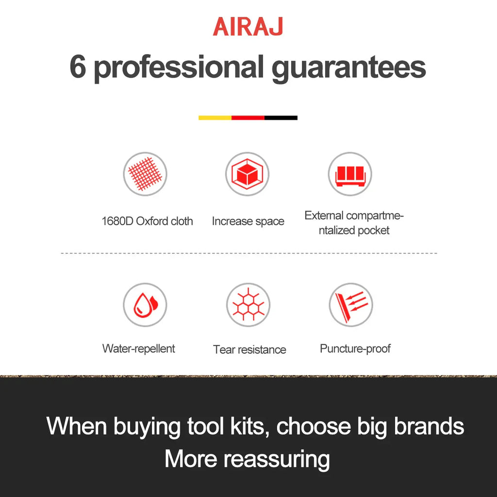 • Customizable :The AIRAJ Multifunctional Tool Bags are customizable, allowing you to add your own labels and organize your tools and equipment in a way that makes sense to you.